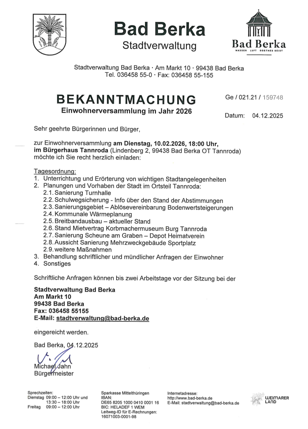 Unter nachfolgenden Link findet ihr den Abfallplan für das Jahr 2026.
